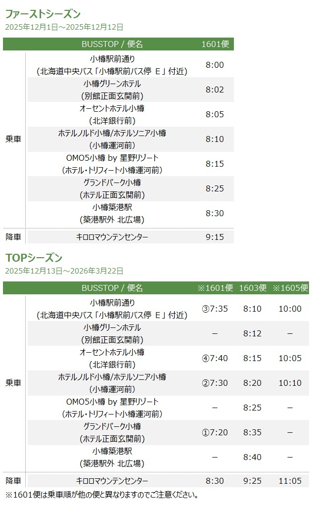 【小樽発着/(片道)約1時間】スキーバス│キロロ:スキーパック(小樽市内⇒キロロ⇒小樽市内) 往復バス代+リフト券(6時間)付きのパックプラン♪  ★1名様より運行★