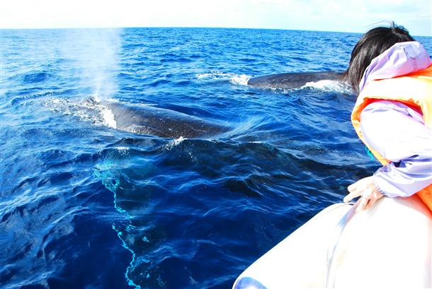 Jの世話人様先日はホエールウォッチングご参加ありがとうございます。天気、海ともに良く楽しいウォッチングが出来て良かったです。発見した場所も港を出てすぐだったのでこれまた良かったです。仔クジラのすぐ後に母クジラがブリーチをしてくれたので皆さん見る事が出来て良かったです。また沖縄に来られるときにはお声がけください。今度は大人のクジラ達をウォッチングしましょう!
