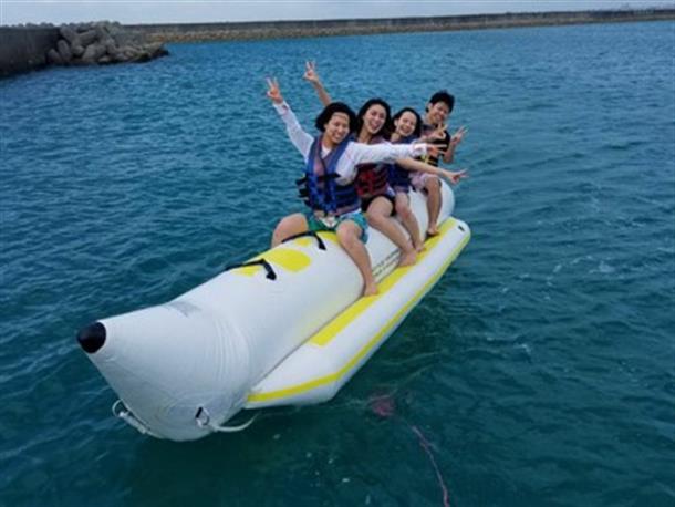 マリンスポーツはバナナボート、マーブル、ビスケット、ジェットスキー体験の中から現地にてお選びください。